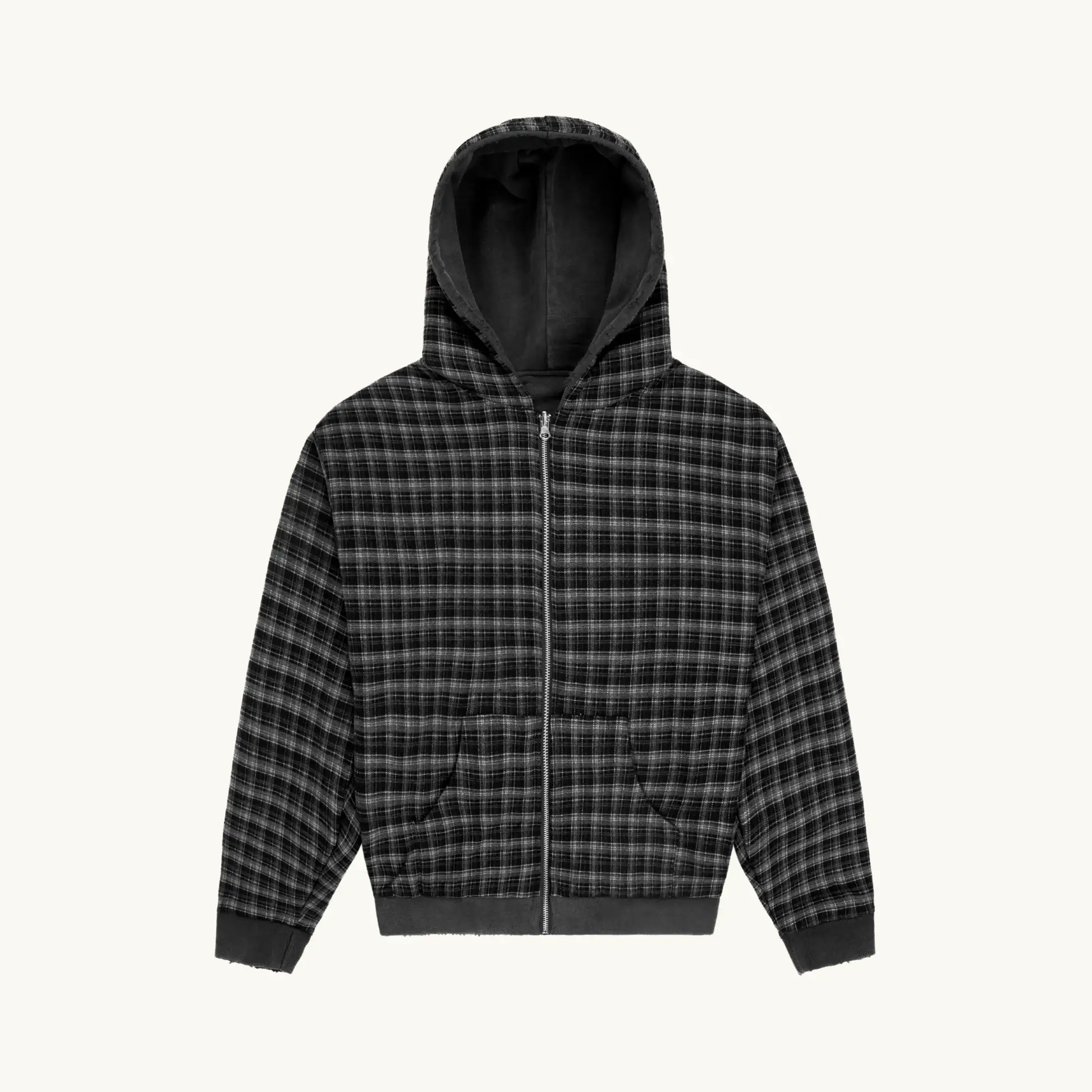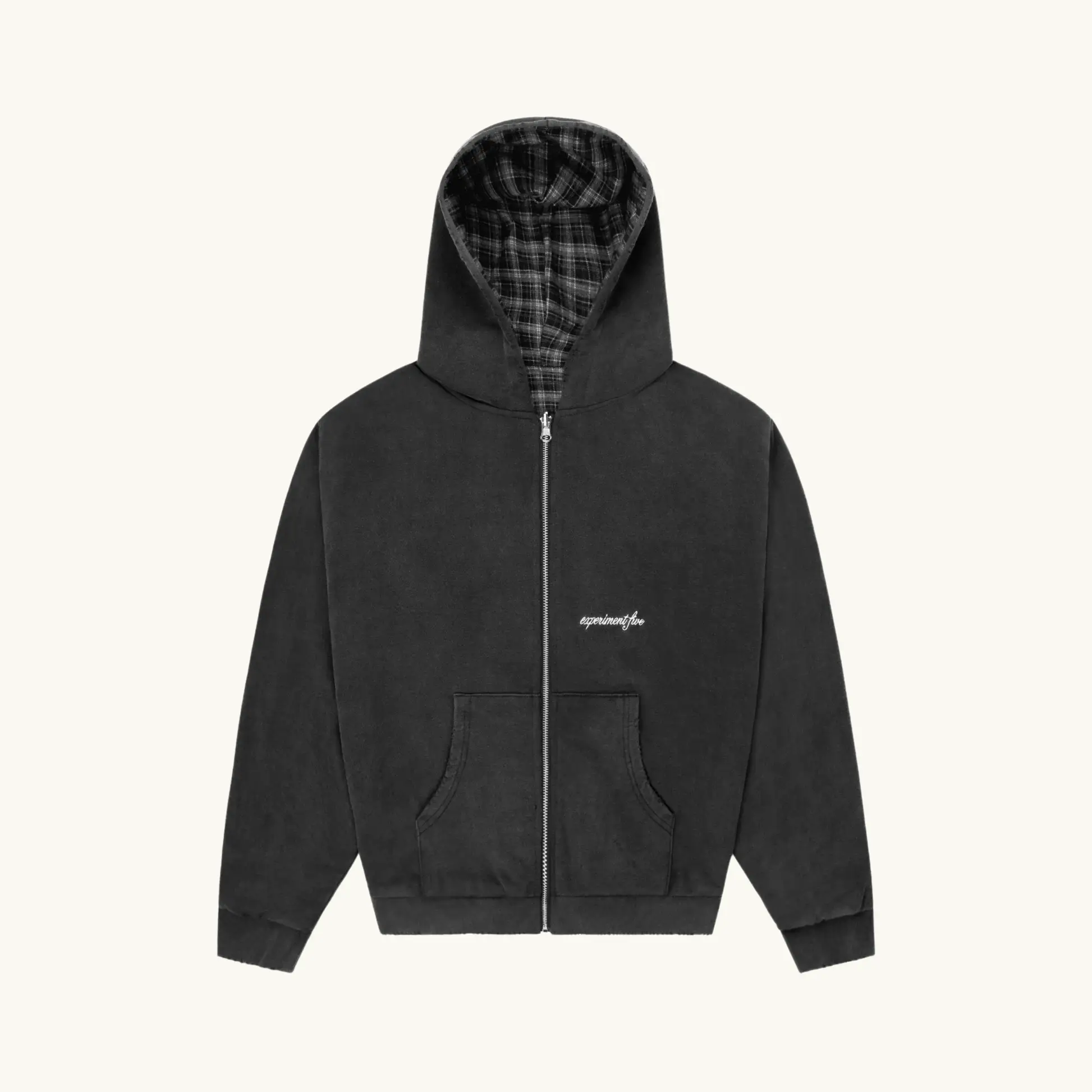 Revesible Plade Zip Hoodie Washed Black